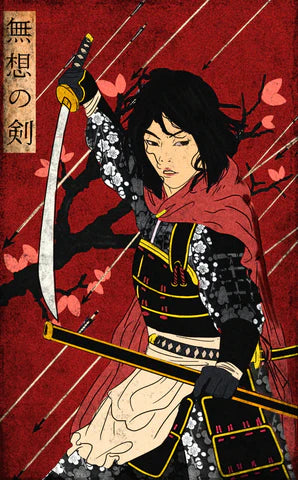 Original artwork inspire by the Onna-bugeisha of feudal Japan. Onna-bugeisha (女武芸者, "female martial artist") was a type of female warrior belonging to the Japanese nobility. Many women engaged in battle, commonly alongside samurai men. They were members of the bushi (samurai) class in feudal Japan and were trained in the use of weapons to protect their household, family, and honour in times of war. Significant icons such as Tomoe Gozen, Nakano Takeko, and Hōjō Masako are famous examples of onna-bugeisha.